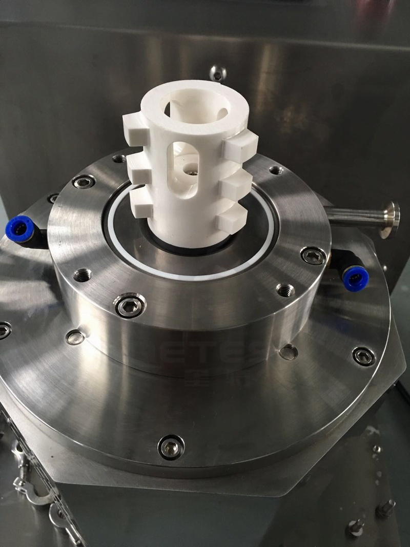 本产品采用欧洲流体研磨技术,研磨转子选用高耐磨氧化锆陶瓷材质,研磨缸体内衬选用耐磨性好、导热性好的碳化硅陶瓷材质,耐磨性好,使用寿命长;转子特制的棒销结构,效率高;密封件全部需用特种橡胶PTFE,耐溶剂。此产品广泛应用于纳米新材料、油墨、化妆品、农药、医药、陶瓷等中高档产品。